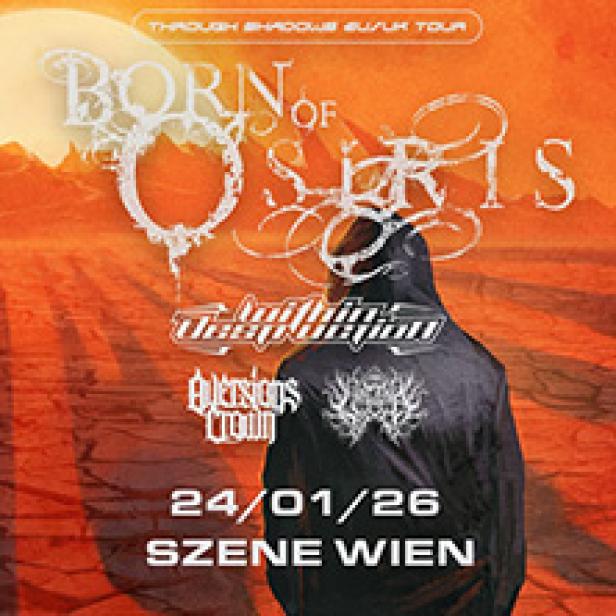 27 Nov 2025 Please Madame - Easy Tiger Tour 2025 p.m.k. Innsbruck 27 Nov 2025 Leftovers An mehreren Orten Was ist los in Wien? Was ist los in Wien? Zurück Zur Was ist los in Wien? Übersichtsseite Wien entdecken Insidertipps für Wien Fortgehen in Wien Essen gehen in Wien Ausstellungen in Wien Kabarett in Wien Theateraufführungen in Wien Flohmärkte Wien & NÖ Neues aus Wien Vergünstigungen bei Events & mehr: Was kann der Vorteilsclub der Stadt Wien? Veranstaltungen in Wien, die du 2023 nicht verpassen solltest Die besten Clubbings in Wien am Wochenende Was ist los in Österreich? Was ist los in Österreich? Zurück Zur Was ist los in Österreich? Übersichtsseite Österreich entdecken Was ist los in Niederösterreich? Was ist los in Oberösterreich? Was ist los in Salzburg? Was ist los in Tirol? Was ist los in Vorarlberg? Was ist los in der Steiermark? Was ist los in Kärnten? Was ist los im Burgenland? Nicht verpassen! 23 Nov 2025 Gernot & Stipsits - Lotterbuben An mehreren Orten 28 Nov 2025 Alfred Dorfer - GLEICH An mehreren Orten 21 Jan 2026 Andreas Ferner - Stundenwiederholung (Best of) An mehreren Orten 01 Feb 2026 Rolf Miller - Wenn nicht wann, dann jetzt! An mehreren Orten Eventkalender Jetzt Event eintragen! Toggle menu Suche © Öticket Konzert Born Of Osiris - Through Shadows EU/UK Tour 2026 Nächster Termin: 24 Jan 2026 19:00 - 21:00 Szene Wien Tickets Teilen Showtimes 24 Jan 2026 19:00 - 21:00 Szene Wien Mehr 24 Jan 2026 Born Of Osiris Mehr