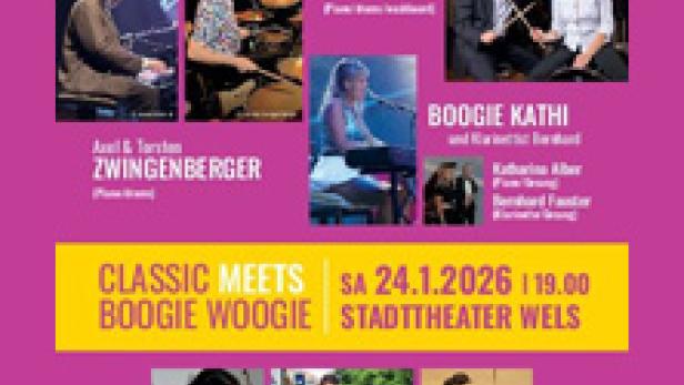 © Öticket Konzert Classic meets Boogie Woogie Nächster Termin: 24 Jan 2026 19:00 - 21:00 Stadttheater Wels / Greif Tickets Teilen Showtimes 24 Jan 2026 19:00 - 21:00 Stadttheater Wels / Greif Mehr 24 Jan 2026 Classic meets Boogie Woogie Mehr